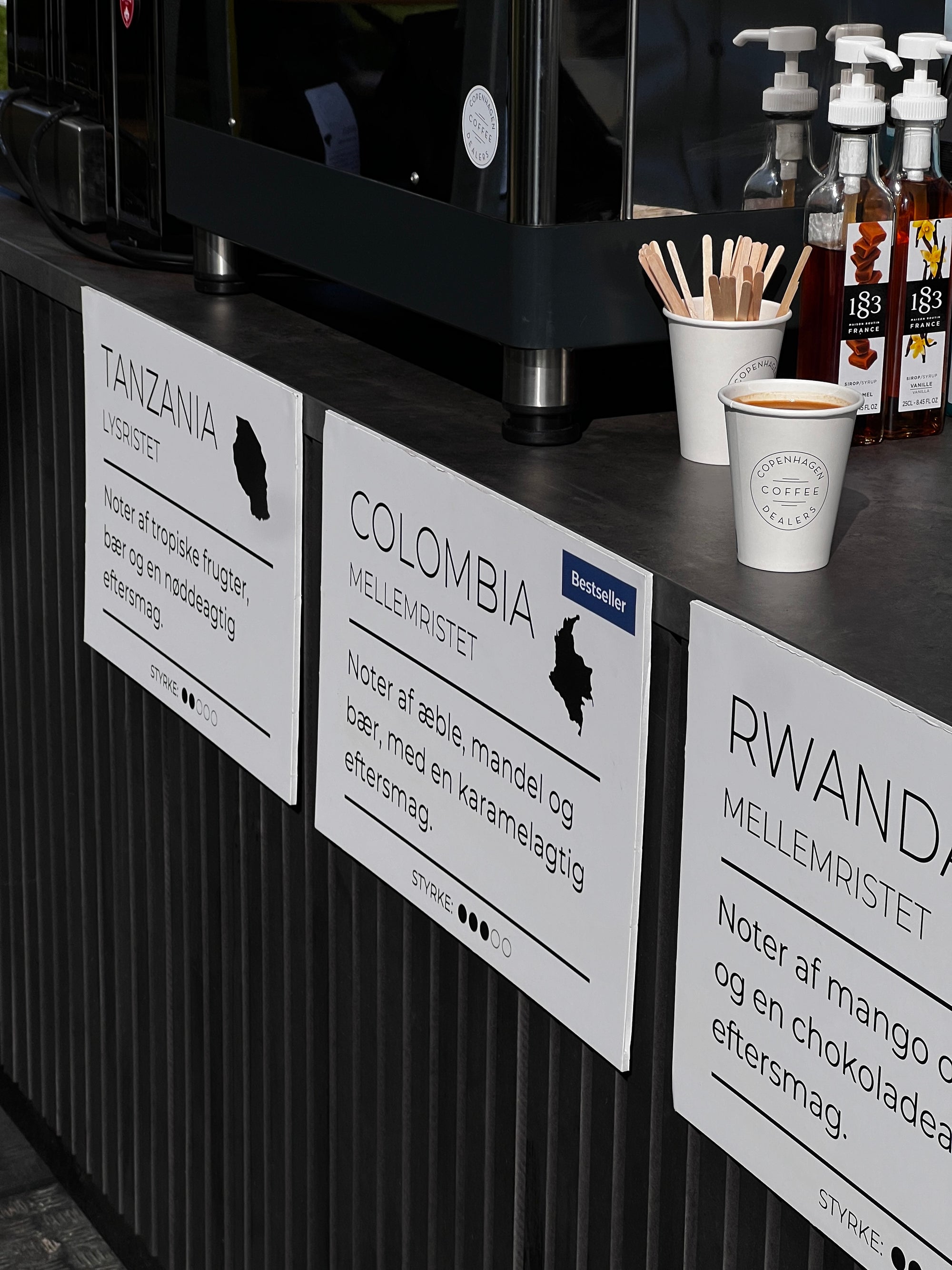 Vores kaffekoncept er perfekt til både små og store events, hvor du ønsker at forkæle dine gæster med en kaffeoplevelse ud over det sædvanlige. Lad vores professionelle setup og friskristede kaffe blive en uforglemmelig del af dit arrangement.